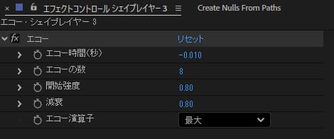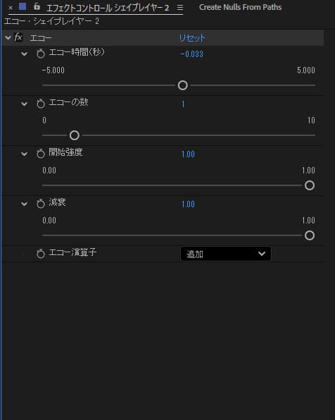 - エフェクトの場所:エフェクト>時間>エコー